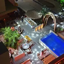прекрасное расположение гостиницы - море прямо под окнами. Хороший сервис, приветливые служащие отеля. Терраса на 4 этаже выше всех похвал! Традиционный китайский завтрак. Отдельное спасибо за прекрасный подарок - лунные пряники в подарочной упаковке! Вечером живая музыка в ресторане внизу. Рекомендуем этот отель гостям,!