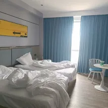 國慶期間入住,性價比還可以吧。酒店離國展地鐵站還是有點小遠的,步行大概要八分鐘左右。衞生中規中矩,一些地方還是有衞生死角,但是考慮價格也能接受了。設施有些許老化,但房間電視可以投屏很驚喜,wifi速度也還行。早餐好像酒店有提供,但沒體驗。此外,酒店附近修路有點吵,不過晚上也會正常停工。總體來説,國慶期間還算是不錯的一次體驗。