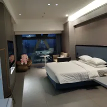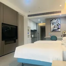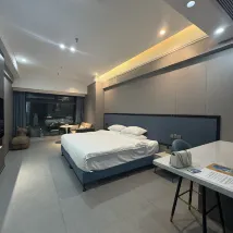 第一次入住昱泰酒店公寓,過關後吃點東西然後聯絡店方安排免費專車從羅湖口岸接我們往酒店,十分方便。 司機 AJ 斯文有禮,能講廣東話,溝通全無隔膜 到店後前台小伍及瑶瑶殷勤接待我們並幫忙安排延遲退房,更主動提供充電線和潤手霜,她們態度親切,笑容滿臉,實在窩心 進房間後感覺間房比看圖片更寬敞,因為樓層高,景觀開揚,夜景更漂亮 翌日辦理離店手續時,店長黃小姐主動詢問我們餘下行程,並介紹酒店週邊食肆及好去處,態度專業 整體來說此店性價比高,旁邊B座已有地下食街及多間具規模食肆;據說樓下新地鐵站快將啟用,到時交通更方便! 此店實在好住~我會再來!