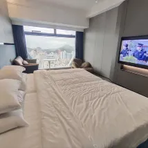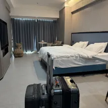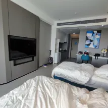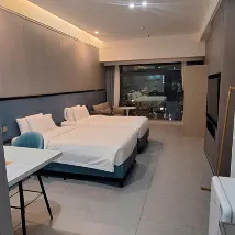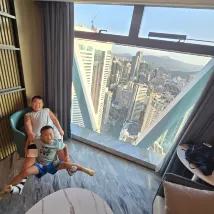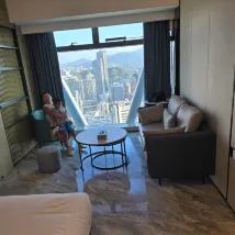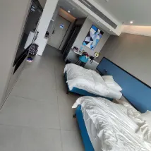 第一次進入32樓房間……一入到房間經已好大煙味🚫🚬 我立即通知大堂……男服務員工作非常之有禮貌及積極…… 立即幫我更換房間. 因為服務員安排我們一家人入住35樓,外觀好靚🥰 兩位小朋友都好鍾意😊 其次就有少少問題!冲涼去水非常之慢……冲完之後需要等待大10分鐘先會去晒水💧💧😞…… 可能因為整座大廈仲係裝修階段……希望之後所有問題都會解決! 另外周邊都有很多食店……行大約五分鐘就到東門🤗.