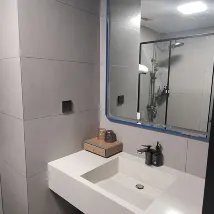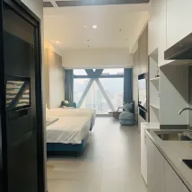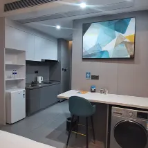 這間公寓位置絕佳,就在國貿站附近。工作人員會在入住前一天提供詳細的入住指南,讓一切都變得簡單明了。公寓寬敞乾淨,有廚房、工作區、沙發、桌子、洗衣機和冰箱。衣櫃空間充足,掛衣服的地方也很多。不過,插座只適用於中國插頭,沒有轉換器的話就無法為手機或電腦充電。浴室也很棒。最棒的是那扇巨大的窗戶,可以欣賞到羅湖區迷人的夜景。我們一定會再入住,非常滿意。