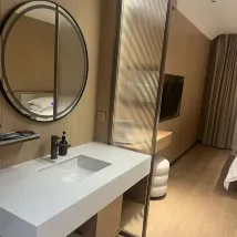 帶家人出遊入住,全家都很滿意!酒店有免費停車場,房間乾淨舒適,床品和毛巾都是純棉材質,觸感極佳,空調控温精準,不會忽冷忽熱。衞生間洗漱台很大,鏡子帶補光功能,化粧超方便。