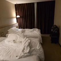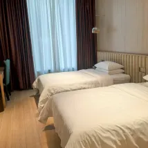 整體十分滿意,最滿意的就是接送機服務,提前跟前台約好時間,司機特別準時,到機場也就十分鐘,不用自己找路搬行李,省了好多事。房間看著很乾淨,床單枕套摸起來清爽,沒有奇怪的味道。雖然離機場近,但晚上很安靜,沒聽到飛機噪音,睡了個好覺。整體性價比不錯,下次飛早班機還會選這兒。