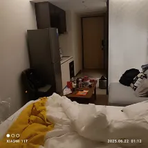 入住一天后再续租,安靜舒适的房间,客厅和睡房的空间大,窗外景开扬。床品舒服,熱水够熱,空調够冷,Wifi很快。