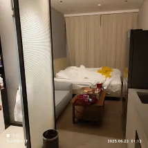 家人們,剛住完這家酒店,必須來誇誇! 一進房間就被整潔感拿捏,傢俱嶄新、擺放規整,白色調看着特清爽 。冰箱、電視這些設施都好用,尤其是電視投屏超方便,追劇黨狂喜✨ 窗簾設計很貼心,紗簾透光又私隱,遮光簾一拉,睡眠環境直接拉滿,睡了個超踏實的覺💤 房間佈局合理,過道寬敞不侷促,從客廳到卧室過渡自然,住起來特舒服。 細節也很到位,插座位置方便,不用到處找地方充電;衞生更是沒話説,角角落落都乾淨,住着安心👍 性價比拉滿!下次來還選這,真心推薦給大家~