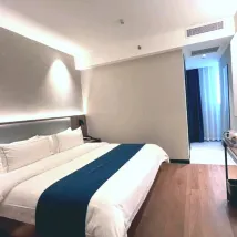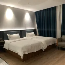 房間裏氣味比較難聞,衞生間地板上都是水,還有頭髮沒清理乾淨,靠路邊特別吵,關窗也特別吵,幾乎沒睡好,,還有施工的,電梯特別難等,施工的工人還有旅客都擠在一個電梯,電梯也非常臟兮兮,,燈光比較差,被子都要爛的 小孩大人都過敏了