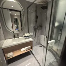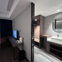 整體體驗不錯👍 這次的房型蠻大的,前台人員專業,辦理入住高效 淋浴間和衞生間分開,並且有兩個洗漱台,蠻方便的