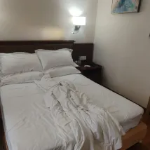 空間狹窄,設施陳舊,老式馬桶按幾次才能沖走污物,床頭插座也是壞的,空調噪音大,影響睡眠,卧具有黴味皮膚起疹子,對面高樓大廈玻璃幕牆光污染嚴重,服務堪憂,避坑