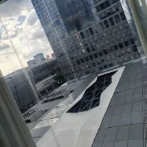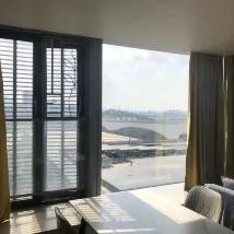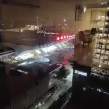 進門見餐廳,客廳,左手邊廁所,右手邊洗手枱,有電磁爐,和抽煙機,熱水壺。 走過過道,有三層大冰箱。 上樓梯,樓梯盡頭處是廁所,一大一小兩個房間,陽台有洗烘一體機。 颱風停運,我住了兩天,第一天晚上在客廳裏看見了一衹小蟑螂。🤣 酒店就在深圳北站東廣場停車場附近,走幾百米米就到了,出行方便。 第一張和第三張窗外的風景,第二張是客廳。