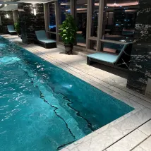 健身房雖然不大,但器材種類齊全。室內和室外泳池都很棒。