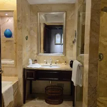 酒店大堂很高大上,房間設施過於陳舊,感覺有點年份了。衞生間放牙刷的抽屜裏有根長髮;鏡子上方筒燈斜了,所以一邊暗一邊亮;床頭ubs充電口壞了,一晚上充不進電,換成另一個就好了。點的外賣已經交給大堂服務員,説馬上送上來,後來過了45分鐘才送到,詢問説是外賣太多了,期間也電話問過幾次,都説馬上送上來,早説要那麼久就自己下去拿了。