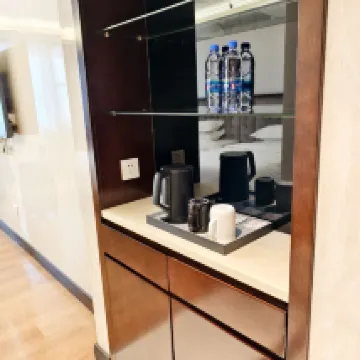 整體房間相當寬敞, 人員服務態度佳 看的出來是飯店後續整修過的, 洗臉台水管排水較慢, 但相當乾淨, 淋浴間的照明較暗, 是較為不理想的部分 其他部分軟硬體都佳, 且附近走一小段就有市集, 方便採購, 地點接近深圳機場, 也有捷運, 都相當方便 隔天早上的早餐, 口味也相當不錯, 清淡不油膩