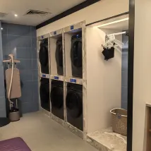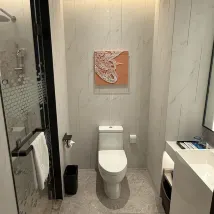房間很乾凈,很舒服,衞生間也很乾凈,看起來還是很新。是來躲颱風的,就算在洗衣房旁邊也不會很吵,洗衣房設備也齊全。玻璃隔音也很好,外面就算風很大也能安然入睡。很先進,前台也是ai,當然隨時可以轉人工,服務也很到位。總之就是有需要下次還會來住。