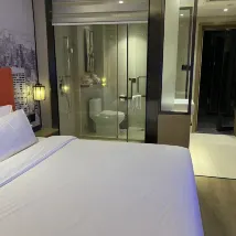 前台小楊服務特別態度特別好 房間阿姨打掃衞生也特別乾淨 一眼看過去特別舒服 喜歡 房間比較智能床特別軟喜歡睡軟床的有福了 樓下特別多吃的 地鐵站也在下面 特別方便 下次還來