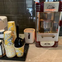 前台小楊服務特別好 耐心又温柔房間衞生做的特別好阿姨也特別熱情 環境就在地鐵站旁邊湖貝D出口旁邊 樓下特別多吃的奶茶店也特別多 根本不用點外賣等着半天 房間設施齊全還比較智能好!☺️ 咖啡及爆米花:爆米花好吃甜甜的 咖啡也好 黑咖啡 推薦推薦 下次還來