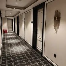 酒店在商廈裡,可能平日來沒什麼人,所以十分安靜,酒店很近國貿站及東門,周邊很多餐廳商埸很方便。 前台Xime服務很好,辦理入住很快,溫和有禮,態度積極。服務給了5星。 另外加 ¥89 做了會員才可以升級房間,房間設計ok,面積不算太大,衛生方面清潔乾淨,床品舒適,浴室還可以連接藍芽邊聽歌邊洗澡,提供了一種讓人放鬆的環境。 缺點方面,一開門房間有潮味,不知道是否這個原因所以房間開了窗,導致有蚊子飛了進來,開了驅蚊機,晚上拍死了幾隻,孩子們還是被咬了幾口,另外廁所的廁紙架建議全部換掉吧,每拉一下廁紙,整卷廁紙就會掉到地上,廁所鏡燈是壞的,洗手盤下面的底板之前應該有損毀過,所以用膠紙鞏固,很不美觀。