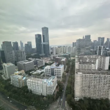 位置不錯,周邊熱鬧方便,交通也很方便,就在福田中心區,離會展中心地鐵站很近,走路十來分鐘就到,不管是去逛街還是辦事都很方便,周邊吃飯的地方也多,下樓就能找到好吃的。房間設施一般,早餐的種類不是很多,吃來吃去就那幾樣,而且味道一般,窗外視野很好,大落地窗不錯