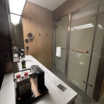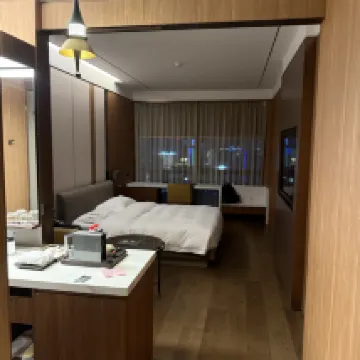 前台小温辦入住時很親和有理,細心的詢問了對房間的要求,給我安排的房間也是住得很舒適,衞生方面也很細節,房間的吹風機是戴森的,體驗很好。夜景超美,電梯有梯控,酒店裝修很細心,有一樓酒店大堂。房間空間不小,電動窗簾,有冰箱,電動馬桶,乾濕分離。性價比很高,出行很方便,衣服忘記拿了,酒店還電話打給我,幫忙郵寄給我,非常nice的住宿體驗!