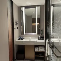 房間設備比較齊全,有浴袍提供,穿在身上很舒服,住房期間也是有求必應,服務周到,五星好評這家,早餐種類繁多,米粉都是現煮的,酒店還提供免費的商務區可以辦公,是個出差的好去處,服務對得起這個價格,房間也有提供基本的洗漱用品很不錯