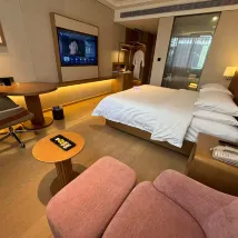 酒店很方便,對面是山姆超市,在超市買了需要冷藏的東西,詢問前台有沒有冰箱可以放,酒店就安排送了一個小冰箱到房間裏,退房後接到電話,衣服落在酒店了,也幫忙用順豐快遞寄回了,服務非常好,下次還會選擇入住。