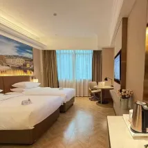 酒店完全超出預期,體驗感拉滿!衞生方面特別讓人放心,床品潔白柔軟且無任何異味清潔做得超細緻,環境也很舒服,大堂裝修簡約又温馨,辦理入住時很放鬆服務更是暖心,前台工作人員熱情主動設施也很齊全,洗漱用品品質不錯,熱水供應穩定且水温合適,空調調温精準,WiFi 信號滿格不卡頓,日常使用特別方便。真心推薦,下次來這邊還選這家!