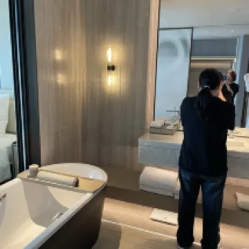 服務超好,超開心超滿意的一次住宿體驗,禮賓員弟弟很贊,提前發送高鐵機場路線,高鐵站門口準時接站,辦好入住行李直接送至房間。生日月送了好吃的蛋糕🍰,收到的快遞也提前顛覆費用送到房間🤣房間衞生超讚,床很舒服,浴缸泡澡送了好幾個一次性泡澡袋還有浴鹽。主要真的禮賓部服務太好了。👍 還免費升級的房間,樓層更高是個更好。下次還會來666😄