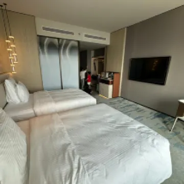 酒店地理位置超便利,離高鐵地鐵站都很近,非常適合出行。46樓大堂聖誕氣氛濃重,賓客關係Lynn提前電話聯繫,根據我的喜好安排並佈置了房間,進房間那一刻有感受到服務的用心,服務人員都很熱情,尤其是行政酒廊Mia服務熱情周到。酒店服務、壞境、設施、衞生等各方面都很棒,不管商務出差還是休閑度假都超適配,性價比很高,推薦!