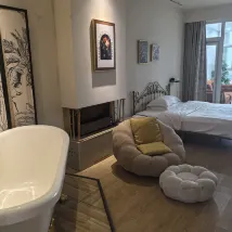 遇到寶藏民宿了,和姐妹到海邊玩回不去了,找了一家民宿。訂了海景房,老闆還給我們升級了房型,房間是50平的大房間,有按摩椅,浴缸還有超清投影儀,裝修是那種工業風又帶點部落風格的,給我感覺就是新穎特別的。而且是180度大海景陽台還有愜意桌子吊椅,最愛泡浴缸了,贊。姐妹們推薦這個房[跳跳]