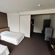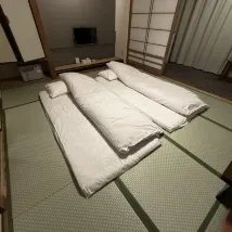 訂了雙床房,中規中矩,靠窗有一塊挺大的榻榻米空間,總體寬敞。 設施不新,但是衞生乾淨。浴衣的花樣很多很好看。 大堂有商店還有遊藝機。 包含的餐食分三個時間段可選,自助。説真的味道太一般,跟食堂似的。和之前住過的温泉酒店不能比。當然價格也不貴,建議可以外食不用吃酒店的。