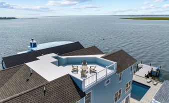 This spacious bayfront home in Ship Bottom, Long Beach Island features 6 bedrooms, 14 beds, 6 full baths, 1 half bath, high-end appliances, 2 inside fireplaces, a heated saltwater pool, outdoor shower, rooftop deck, firepit, BBQ grill, boat dock, ice machine, and stunning bay views. Just blocks from the beach, it's the perfect blend of luxury and coastal relaxation for families and groups seeking a memorable getaway.