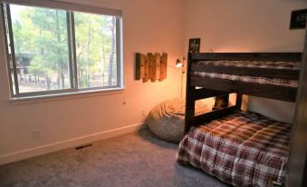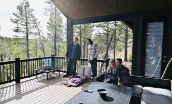 Boasting an elegantly modern interior and situated on a quiet one acre parcel on a cul-de-sac and immediately adjacent to the forest, this Arizona cabin is the perfect home base for family and friends looking to explore the mountains of Navajo County. Hiking trails are within steps of the cabin. The cabin is also only a few minutes to town, Fool Hollow Lake, Torreon, Bison Golf Club, and other attractions.