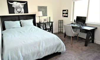 HOME OFFICE: Guest bedroom has desk, monitor, keyboard, and printer. Fast 150MBps Internet service. Have a great view of a national forest while you work remotely!