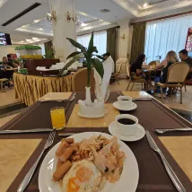 Petit déjeuner pas très varié pour le standing et pas si frais et délicieux, un peu sur notre faim.