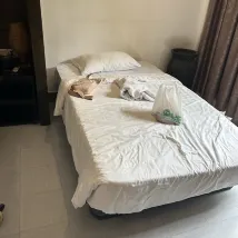 We came across a few issues that could bring this hotel rating down to 1/10. Bed was comfy but we found a dead cockroach underneath the closet. Bloodstains on the bed sheet, the toilet was smelly. The towel was stained with makeup. And lastly, the dirty swimming pool. You can even see the bacteria floating around.