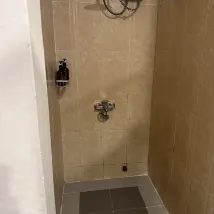 And in the shower the upper head shower was very old and rusty, and there was no adjustable head shower.