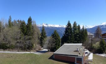 Apartment house "Barzettes-Vacances A/B". Above Montana, in the district of Les Violettes, 1.5 km from the centre of Montana, 2.2 km from the lake, 150 m from the skiing area. In the house: lift, storage room for skis, central heating system, washing machine (extra), drying room. Parking (limited number of spaces) at the house, public car park at 20 m, extra. Grocery 1.5 km, supermarket 1.6 km, restaurant 1.5 km, bakery 250 m, bus stop "télé Violettes" 100 m, railway station "Funiculaire Montana Gare" 1.2 km, bathing lake "Moubra" 2.5 km, lake Grenon 2.2 km. Golf course (18 hole) 3.5 km, skisport facilities, slopes, ski rental 150 m, ice rink 1.9 km. Well-known lakes can easily be reached: Etang de la Moubra 2.5 km. Please note: The owner does not accept any youth groups. Ski bus (free of charge). Additional accommodations can be booked. "Barzettes-Vacances 553 / Entrée N° 14", 2-room apartment 46 m2 on 3rd floor. Object suitable for 2 adults + 1 child. Partly renovated in 2017, comfortable and beautiful furnishings: living/dining room with 1 sofabed (128 cm, length 180 cm), cable TV (flat screen). Exit to the balcony. 1 room, north-west facing position with 1 french bed (140 cm, length 200 cm). Kitchen (oven, dishwasher, toaster, kettle, electric coffee machine, Capsules for coffee machine (NESPRESSO) extra, raclette grill, fondue Set (chinoise, cheese)). Shower/WC. Small balcony, south facing position and, east facing position. Balcony furniture. Side view of the mountains. Facilities: hair dryer. Internet (WiFi, free). Please note: non-smokers only.