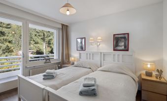 Good location and not much going on outside of the holidays, so we were able to use the swimming pool and sauna almost to ourselves. Apartment a bit dated but spacious, very comfortable beds. Few sockets and adapters. Too little storage space for skis.