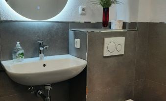 Die Wohnung ist wirklich schön. Wenn man ältere Bewertungen liest, erkennt man auch, dass viel gemacht wurde. Bspw. ist das Bad überhaupt nicht eng. Ja, die Dielen knarzen immer noch. Uns hat es nicht gestört. Das Haus ist mit allem ausgestattet, was man so braucht. Der Empfang war freundlich, hilfsbereit und unaufdringlich. Wir haben zwei Tage jeweils ein Fahrrad geliehen, das ebenfalls im einwandfreien Zustand war.