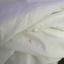 1. Broken Bed Frame – The bed frame was visibly damaged, with peeling material that made it look neglected and uninviting.