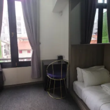 飯店離牛車水地鐵站只有幾分鐘的步行路程,這點很棒。 自助入住很方便。 房間看起來像膠囊旅館,空間稍微寬敞一些,可以伸展一下。說實話,我的大型行李箱都打不開。 除了沒有電梯之外,我真的沒什麼問題,哈哈。 我不得不把我的大件行李從一樓搬到四樓,這並不容易。