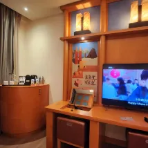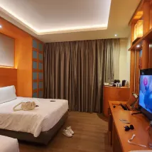 這家酒店真的很不錯!地理位置超級優越,出門左邊看哈利波特,右邊是環球、捷運站。當然房間裏的條件不能跟國內同等價位的酒店比,但是在坡已經性價比超級高了。迷你吧免費,而且內容很多!水、各種飲料、椰子水,這個在🇸🇬酒店的含金量超級高了!而且那個電視櫃下面配了三把椅子,又省地方又方便,一家人坐着吃個東西啥的特別特別方便。因為附近吃飯選擇性不是很多,基本都得坐捷運去那個商場,我們轉一圈沒啥吃的在房間吃的泡麪外加老曾記的小吃,很愜意。前台有個會中文的小夥好像叫Andy?很nice,其他印裔那些就很一般,自己一嘴snglish,還瞧不上説中文的。