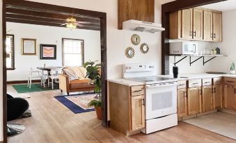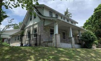 The Breen House is the perfect space to unwind and take in all that Parkville has to offer! With four bedrooms, four full bathrooms, and 2 living rooms you'll have plenty of space to kick back and relax. It is ideal for families, groups of friends, or business travelers! The eclectic aesthetic will make you feel right at home in Parkville, providing you a stress free space to relax after a day of exploring. Built in 1912, it is the original family home of Charles P Breen. Breen was a Master Stone Mason for Park College and you'll see his work in many of the stone retaining walls throughout Parkville!