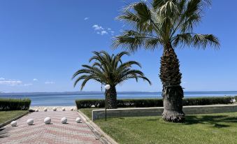 This beachfront getaway is located just 5km (c. 3 miles) from the famous Grand Resort Porto Carras & Casino and the quaint village of Neo Marmaras, both of which offer great food, wine and shopping!