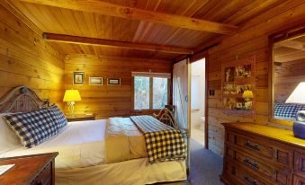 All the major appliances in the kitchen nook include small appliances such as a slow cooker, microwave, coffeemaker, and coffee grinder. Cleanup is a snap with the dishwasher provided! The modern dining room table can seat ten, or when the weather permits, step through the French doors to enjoy your meal on the back deck while breathing fresh mountain air.