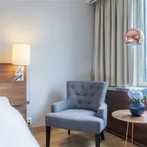 首先想建議飯店在網站上要註明飯店入口處是在Solna Centrum 商場裡面,而不是在大街上。我拖著行李上上下下前前後後找入口處找了很久,還有居民從住家陽台上問我是不是在找飯店,說很多旅客都找不到。感謝這位好心的居民下樓來帶我穿過大樓進入商場。