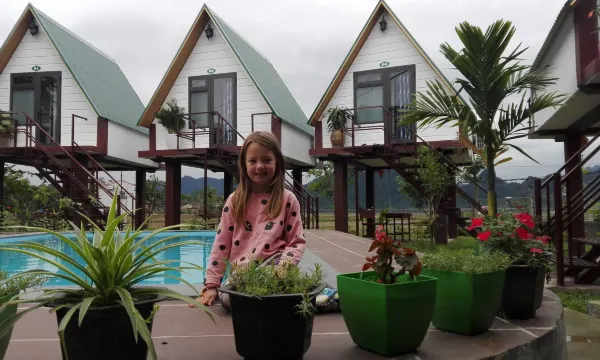 A beautiful homestay with an amazing host. Son went above and beyond making our stay comfortable and enjoyable. The facilities and room were perfect for us, raised bungalows and the good breakfast was eaten underneath with lovely views of the countryside. The cave trips were amazing and Mr Tangs duck farm was so much fun. Loved our stay and could’nt have hoped for a better host.