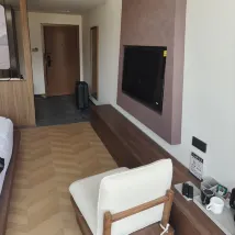 房間落地窗超大,窗外有山景,即使是下雨天也是煙霧繚繞,宛如仙境。房間內裝修簡約大氣,木質傢俱質感十足,住着特別舒服。前台小姐姐超好,很温柔漂亮,熱情又貼心,讓人感覺特別親切。下次還會再來🎀