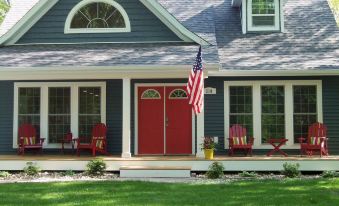 Second feature being CONVENIENCE: The house was built with the concept of what rental families would need for a perfect summer getaway. Therefore, we put 2 bedrooms and a full bathroom upstairs and 2 bedrooms and full bathroom on the main level. Perfect for 2 families or one large family! We have one king bed, two queen beds, six twin beds(bunks). All bed linens are provided. If that is not enough convenience- we added an upstairs refrigerator and vanity/sink in the master bedroom!