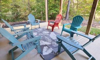 This house is located down a very quiet street with lots of woods and privacy. The house is amazing and so comfortable. The screened in porch was my favorite ...well and the AC was a close second because it was hot and humid while we were there.