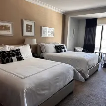 我們入住是為了慶祝結婚紀念日。預訂時我已註明了這一點。辦理入住時,前台的艾莉西亞祝賀我們,並告知我們將升級房型,還送了一瓶氣泡酒到房間。房間(21層,25號房)令人驚艷,可欣賞城市美景,乾淨整潔,設施齊全,寬敞舒適,設計經典奢華。價格雖高,但物有所值。 酒店本身也很棒,有很多娛樂活動,美食佳餚,員工服務周到。 如果您選擇不使用代客泊車服務,步行到多層停車場大約需要5-10分鐘。
